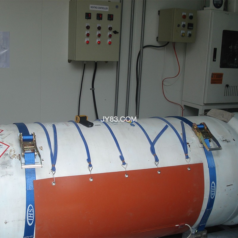 氨氣瓶加熱毯采用硅橡膠材質(zhì),屏蔽網(wǎng)采用雙側鋁質(zhì),通過(guò)數顯溫控箱控制溫度,溫度范圍是15℃-50℃,精度±1℃,預置60±1℃常閉觸點(diǎn)溫度開(kāi)關(guān),采取串聯(lián)的形式,只要有一處溫度過(guò)高,就會(huì )斷開(kāi)加熱器的總開(kāi)關(guān)。 加熱毯內部屏蔽層需接地 ,保溫層采用厚度不小于20mm的阻燃材料,整體保溫,溫控箱與氨氣瓶的連接方式:防爆接頭或快插接頭,加熱毯采用捆綁方式固定。